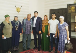 Кара-Суудагы жетекчи айым чоң таенеси 1 кылым мурда жасаган туш кийизди белекке алган