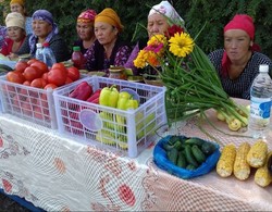 Кара-суулук дыйкан айымдар өстүргөн жер-жемиштерди көргөзмөгө алып чыгышты